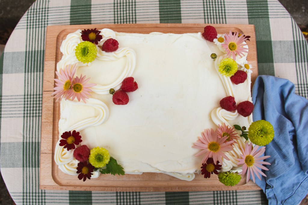 Each bake is one-of-a-kind & decorated using fresh and seasonal florals sourced at the time of your order and in an organic fashion. I’m happy to chat with you on color preferences, florals, and produce that are in season.